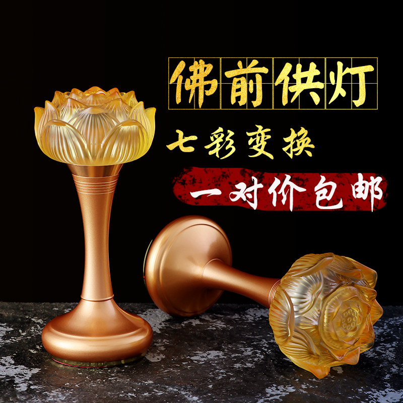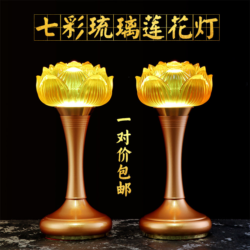 Colorful glass lotus lamp Buddha lamp led plug-in Guanyin Buddha lamp pair of household Buddha front lamp Changming lamp