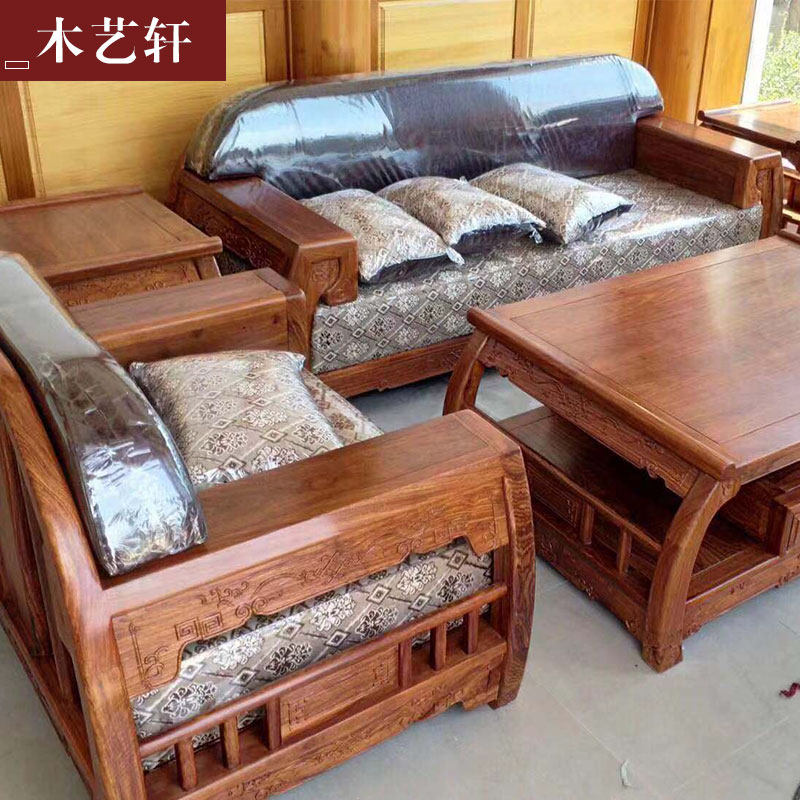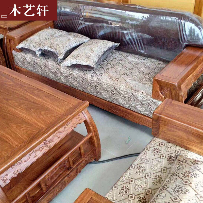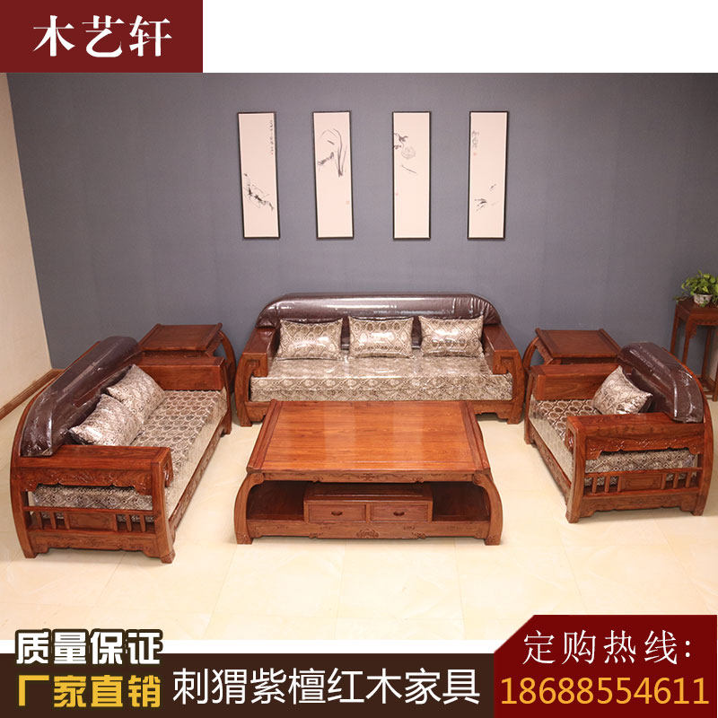 Red Wood Furniture Hedgehog Purple Sandalwood Flowers Pear Wood Living Room Full Solid Wood New Chinese Crescent Sofa Combination Manufacturer Direct