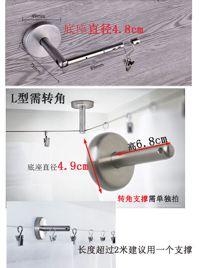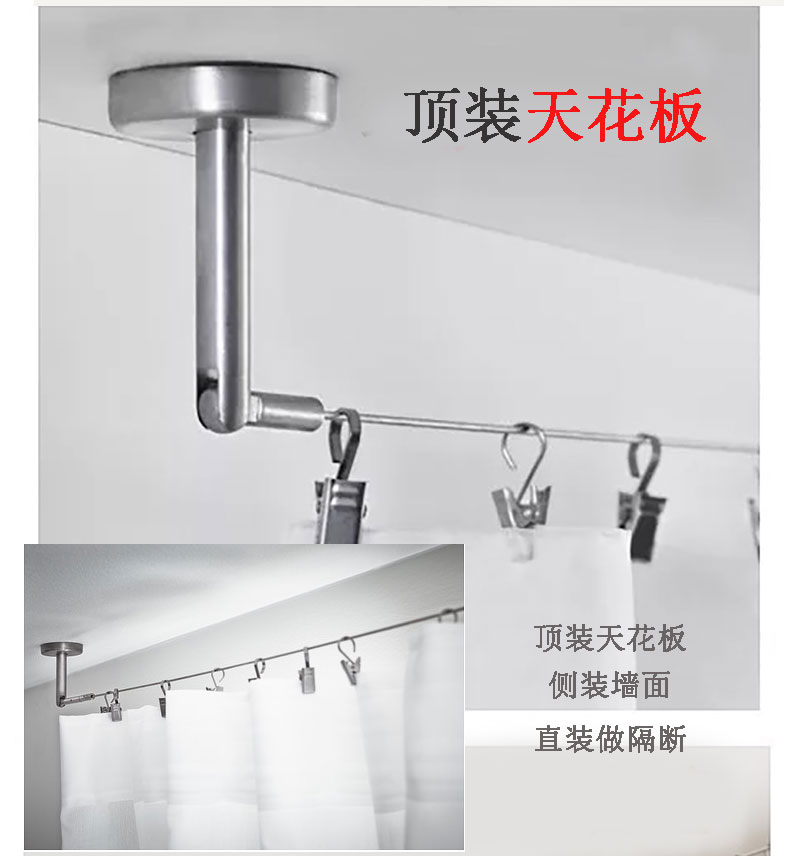 Punch-free indoor hanging curtain wire rope hanging line Curtain track line drawing rope Iron wire balcony household clothesline