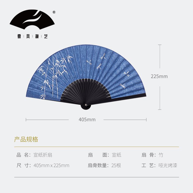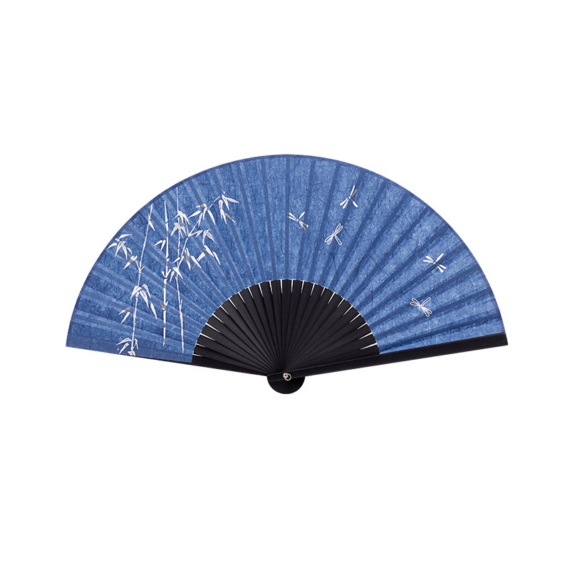 Summer style autumn art summer hollow bamboo dragonfly Chinese style retro daily Hanfu portable double-layer rice paper folding fan
