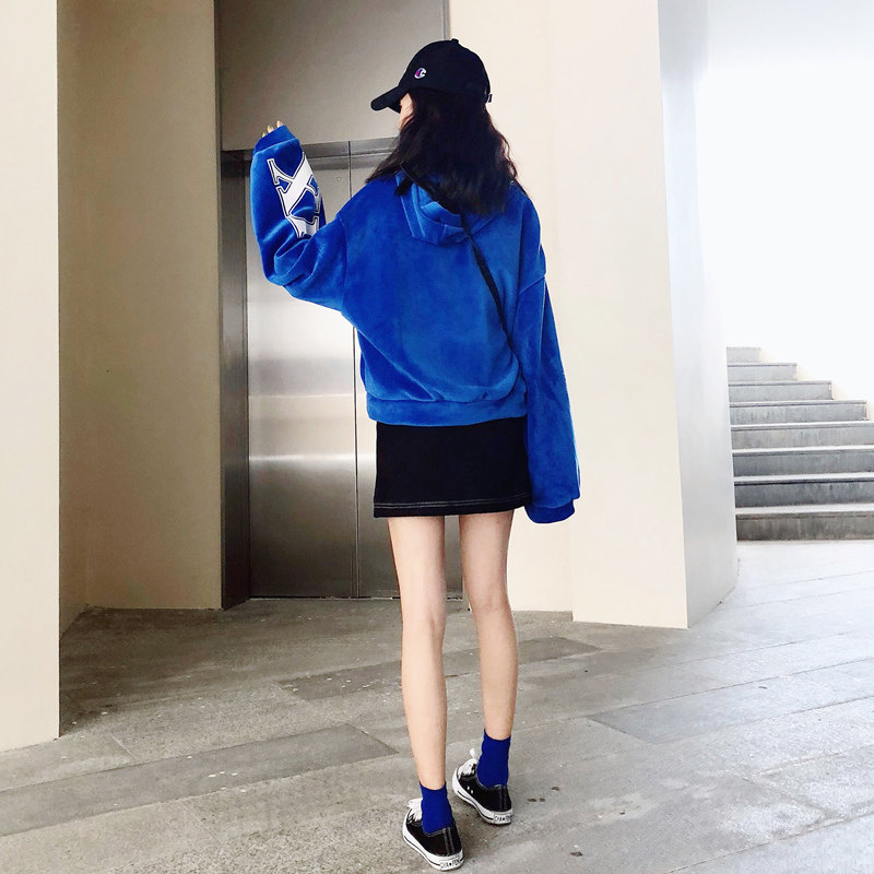 Klein blue necroclad woman 2022 spring autumn season new loose plus suede thickened small subshort gold velvet blouse