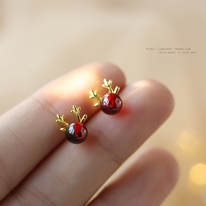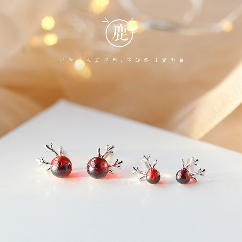 s925 sterling silver red garnet antler ear acupuncture 2022 new female earrings simple student small design sense