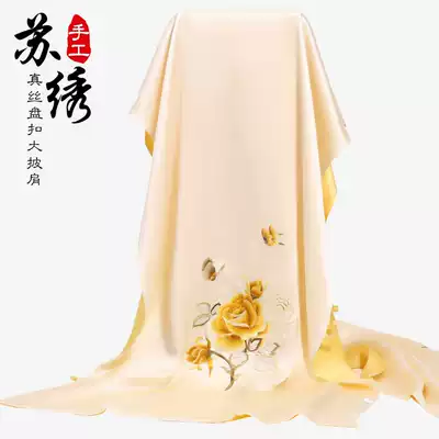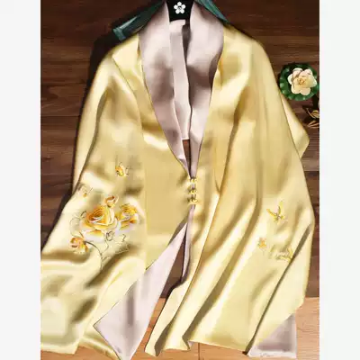 Silk embroidered shawl female mulberry silk handmade Su embroidered Cheongsam send mother double silk scarf plate buckle embroidered scarf