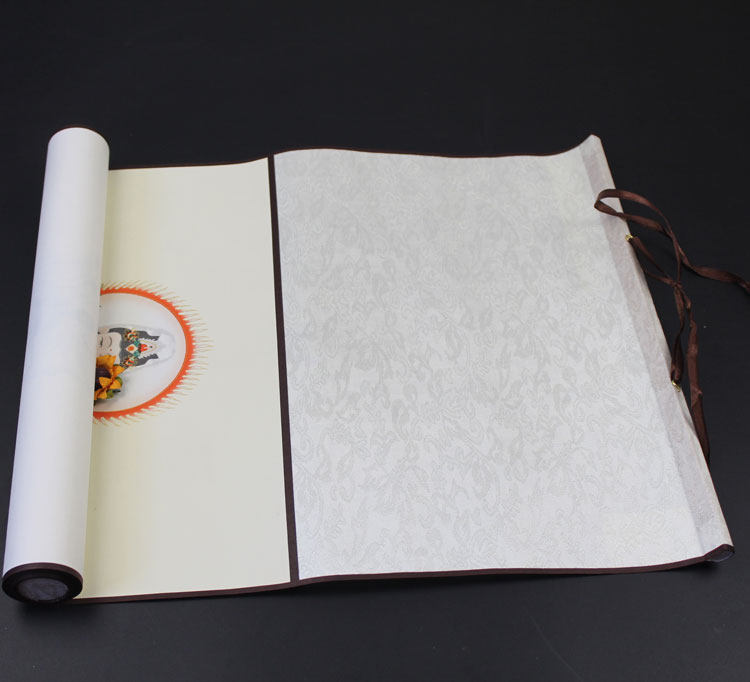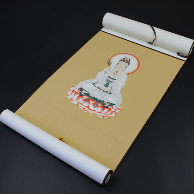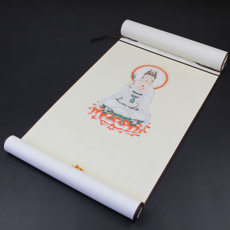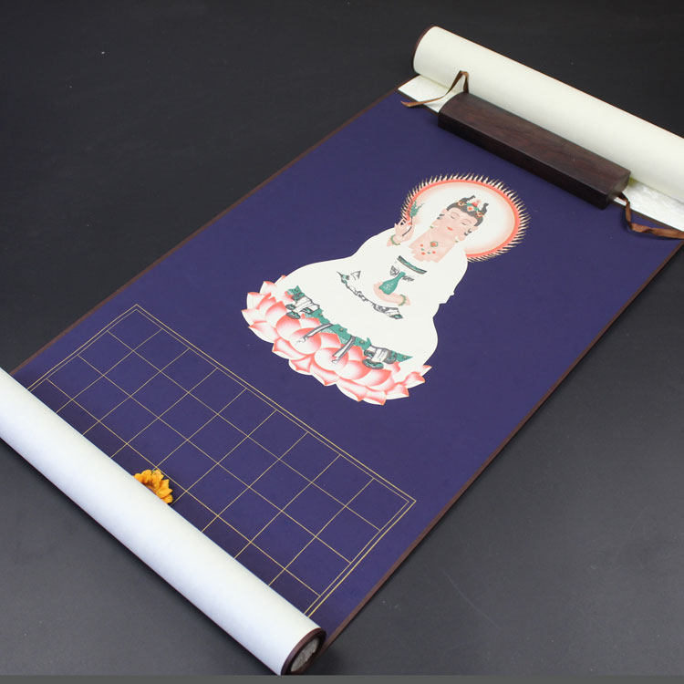 Prajna Paramita Heart Sutra hand-rolled batik rice paper long roll blank hanging scroll scroll vertical shaft vertical version Heart Sutra rice paper