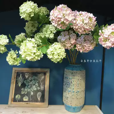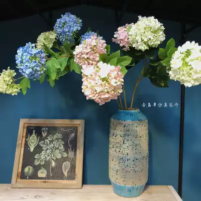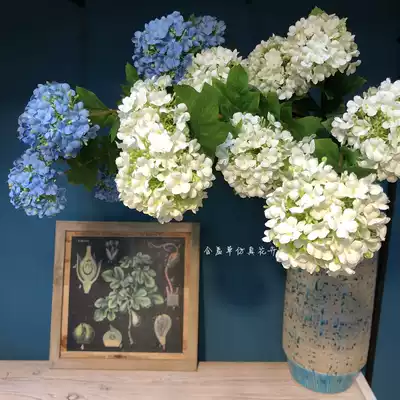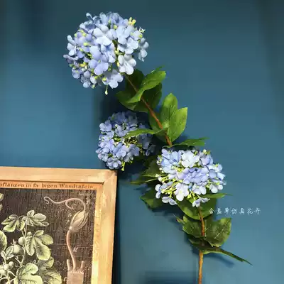 High-end simulation hydrangea fake flower three-headed wooden hydrangea wedding decoration silk flower home soft decoration placement flower floor flower