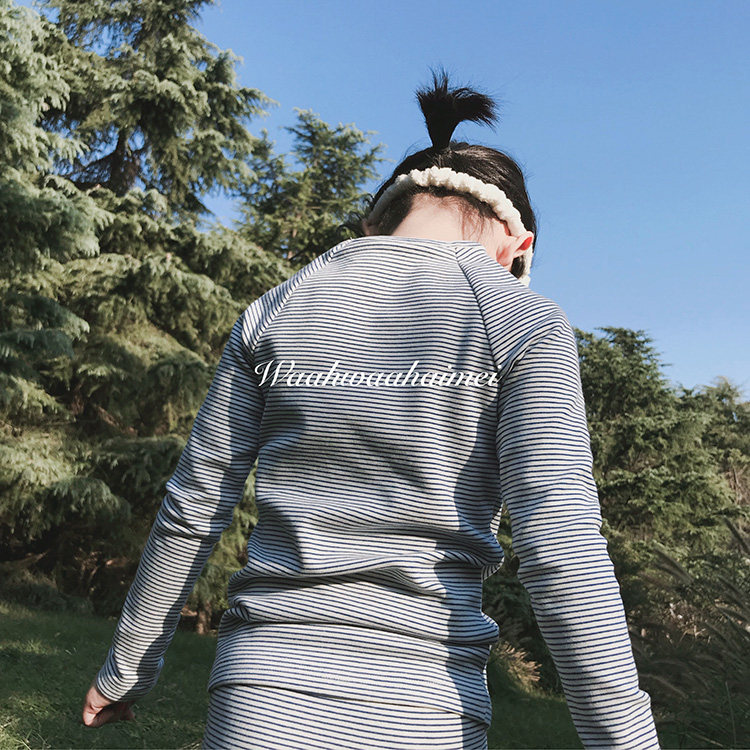 Doll love beauty small, medium and big children striped thickening home autumn clothes sanitary pants set