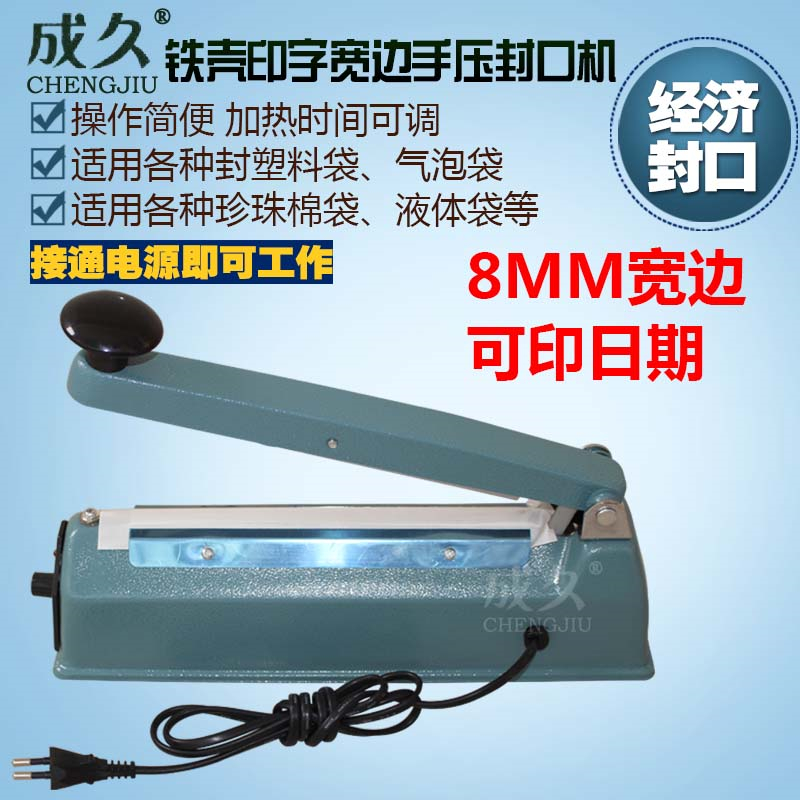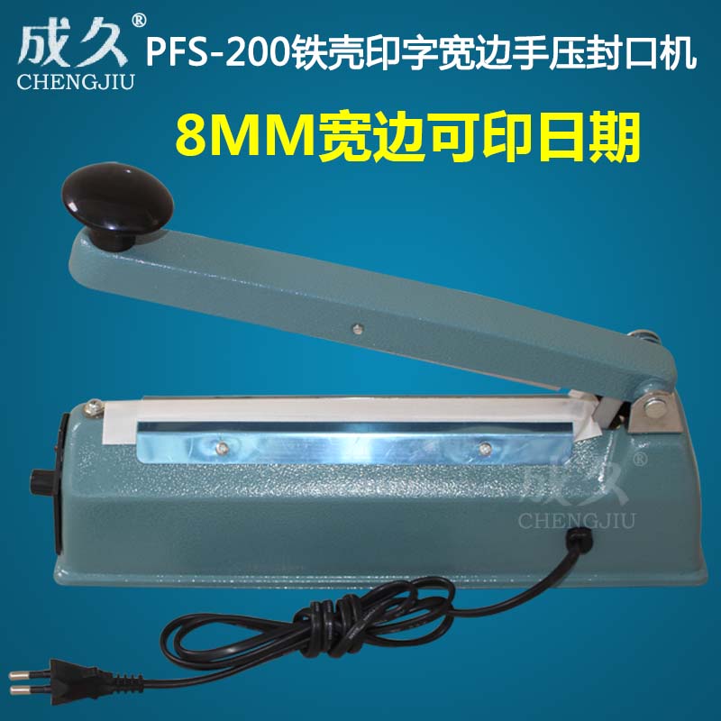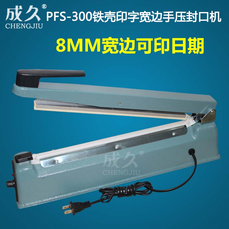 PFS200 300 iron shell printed wide side hand press sealing machine Tea snack kraft paper bag manual sealing machine 8mm wide plastic film aluminum foil bag printing date sealing machine