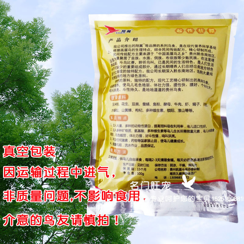 Thrush bird food, fighting bird vacuum food, Xiangyi thrush feed, vacuum 500g Guizhou Kaili mention sexual thrush material