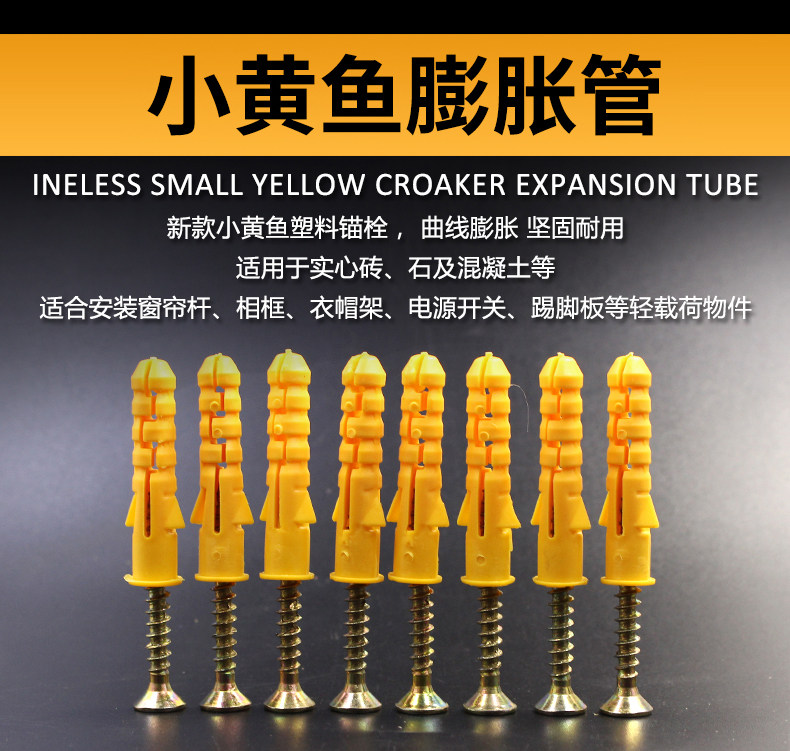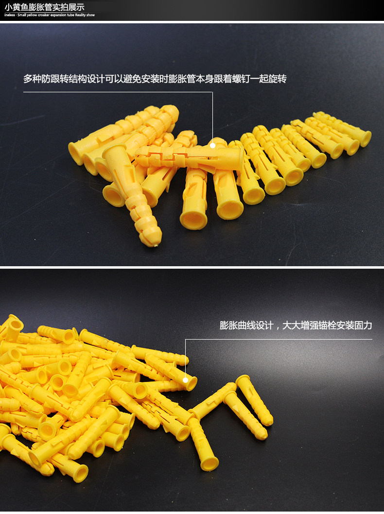 Small yellow fish plastic puffed tube expanded screw bolt puffy plug fit self-tapping nail 6 * 30mm8 * 40mm