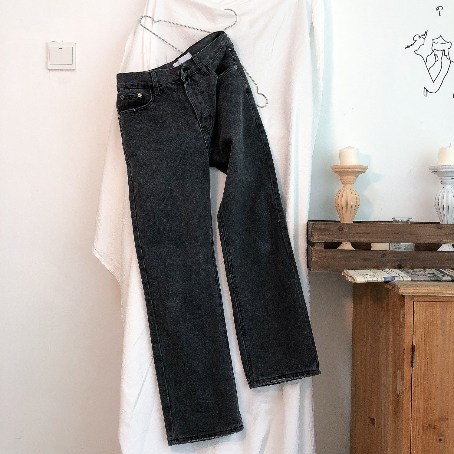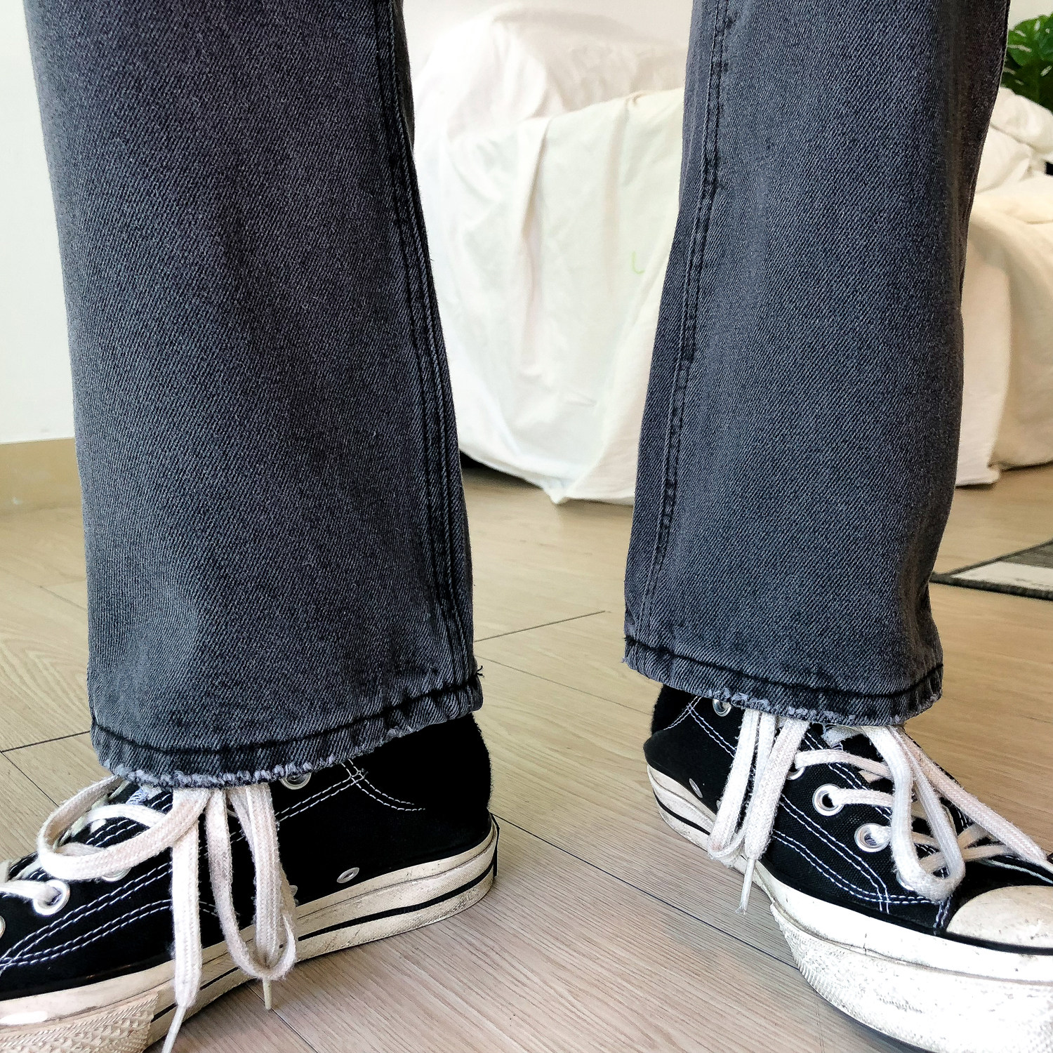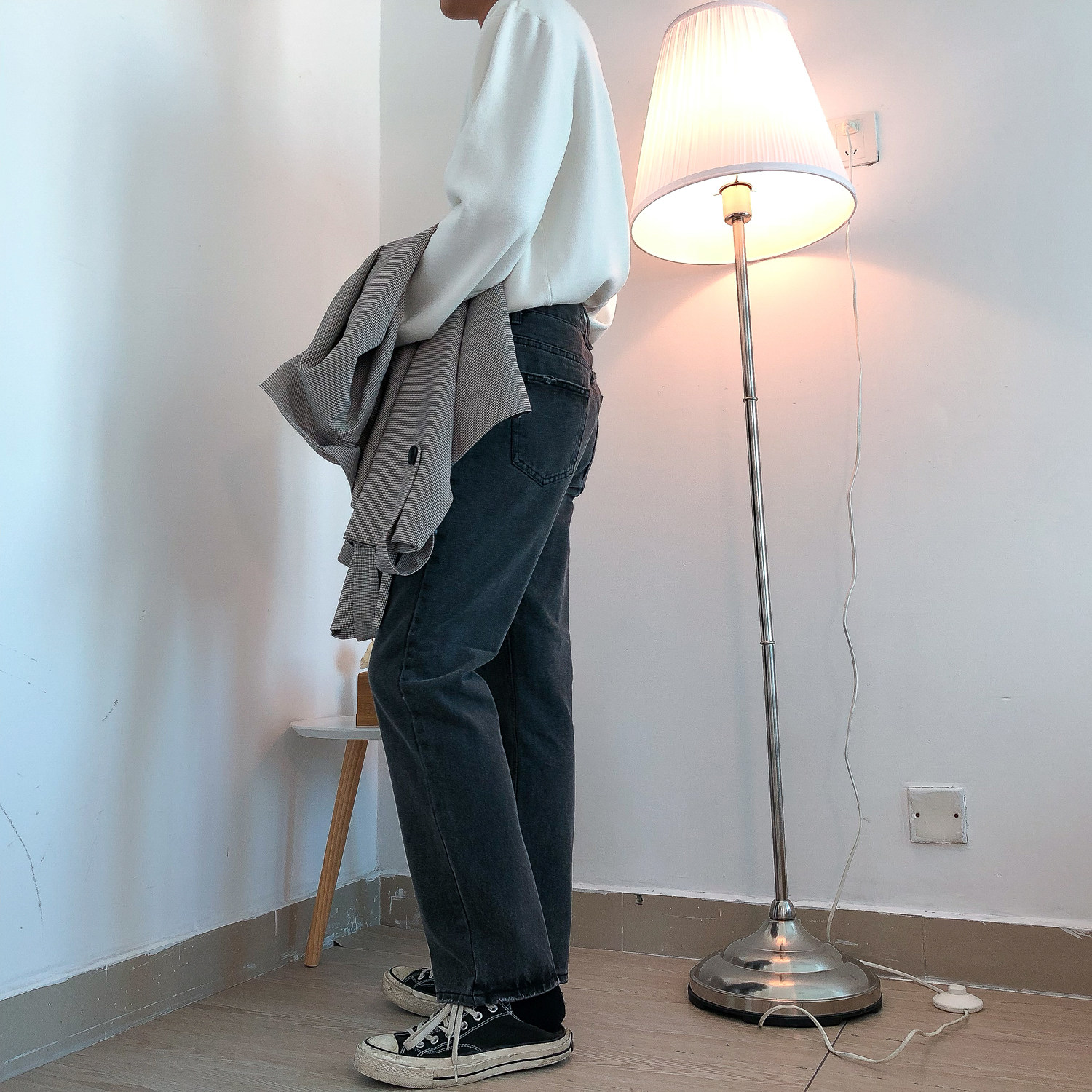 19studio Korea ulzzang black high waist bf washed loose straight wide pants jeans trousers men