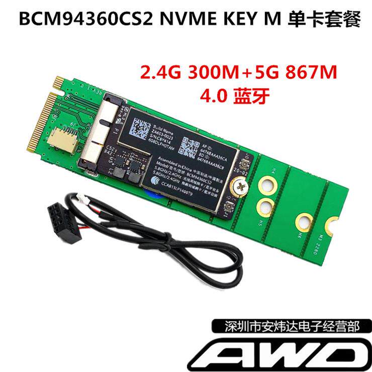 BCM94360CS2 AC wireless network card desktop PC NGFF NVME SSD port KEY B M black Apple free of drive