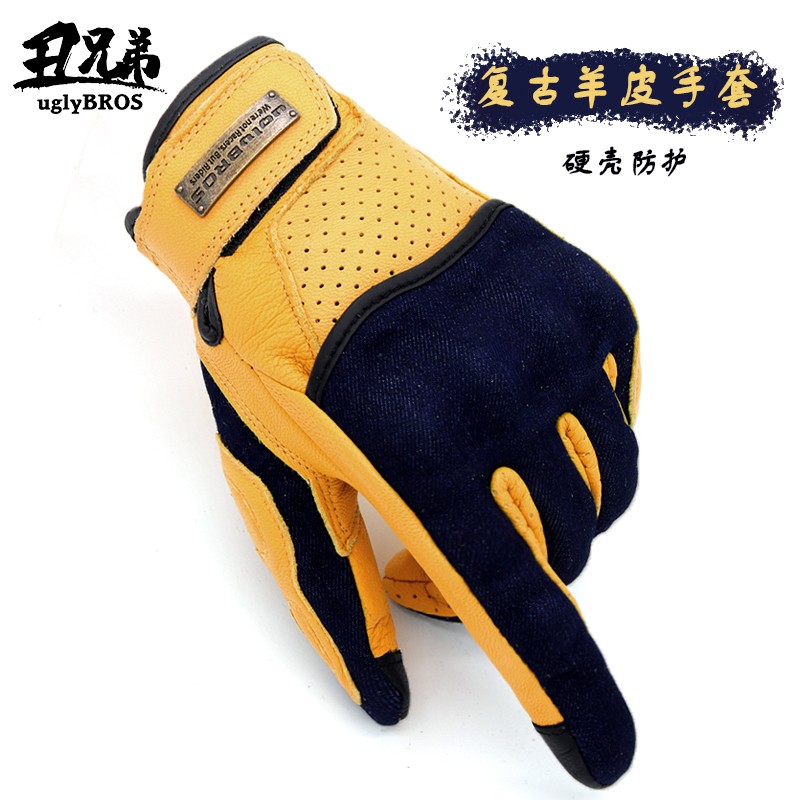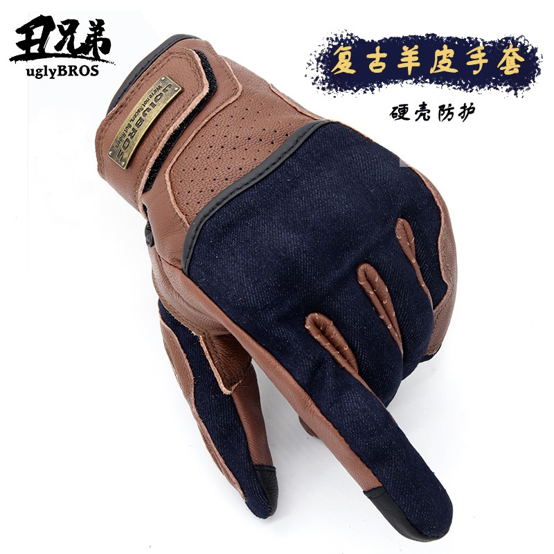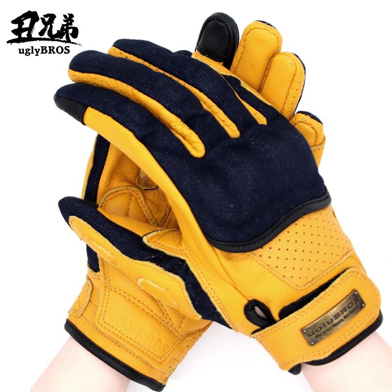 uglybros ugly brothers vintage denim motorcycle gloves four seasons motorcycle riding lambskin touchscreen gloves