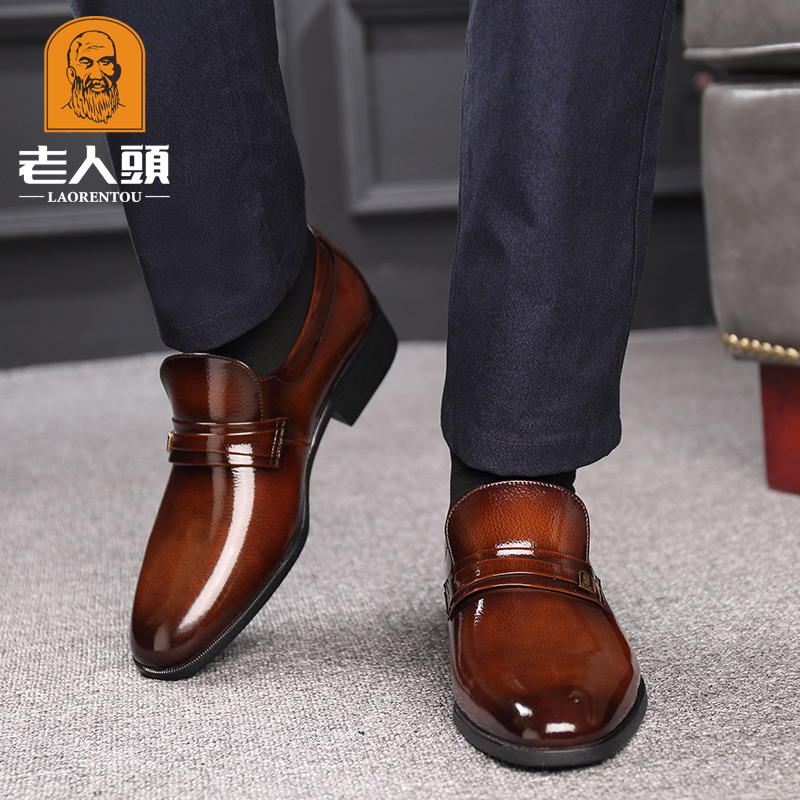 Old man's scalp shoes men's 2022 spring and autumn leather business formal men's shoes British casual shoes men's pointed toe wedding shoes
