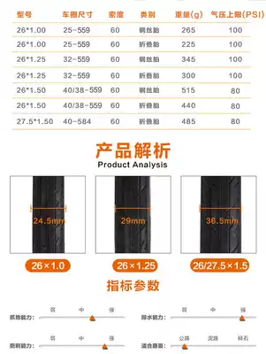 26x1 0 black steel wire tire 265g 26X1 0 black folding tire strip 225g 26X1 25 black steel wire tire strip 345g 26