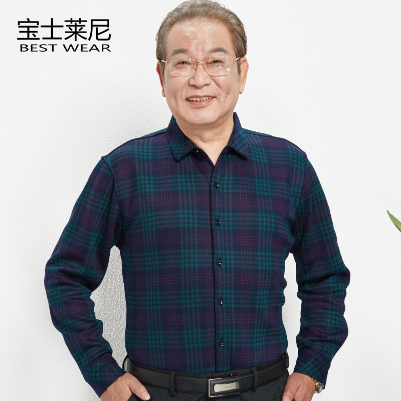Middle Aged Long Sleeve Shirt Plus Suede Thickened Autumn Winter Dad Clothing Business Casual Loose Aged Men Plaid Shirt