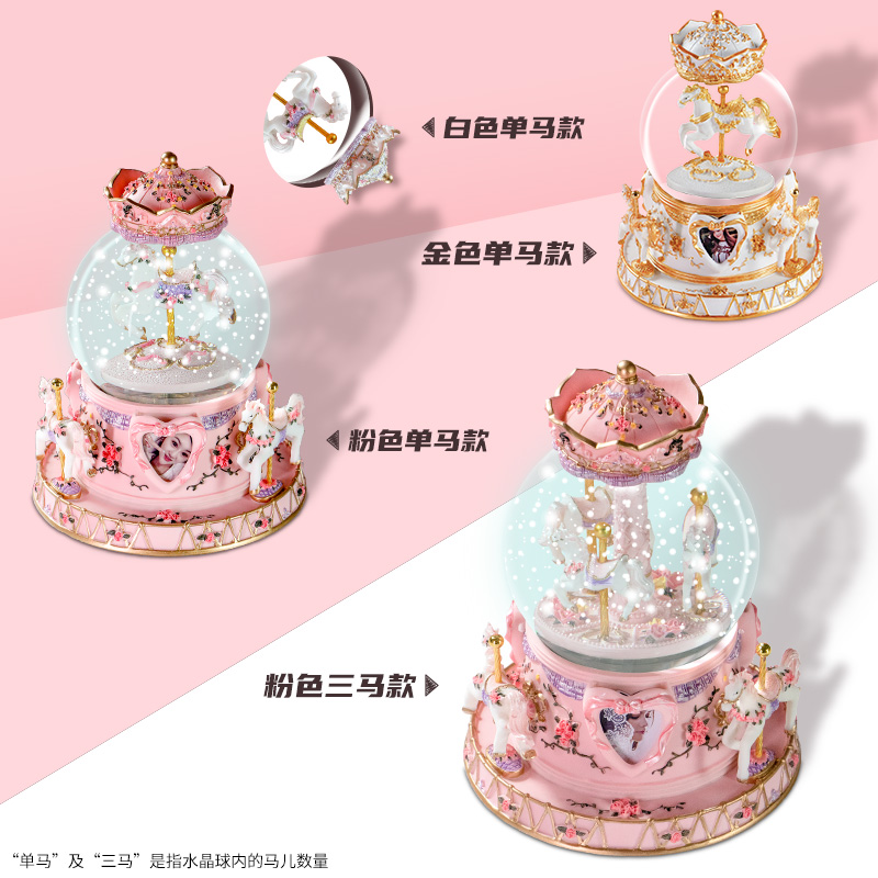 Carousel music box Christmas crystal ball for girls birthday gift music box music box can be customized photos