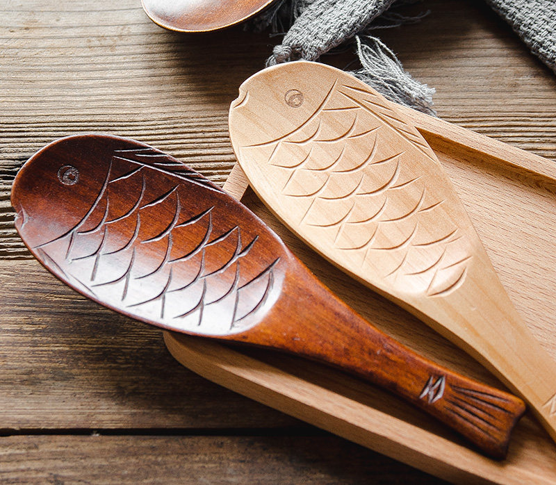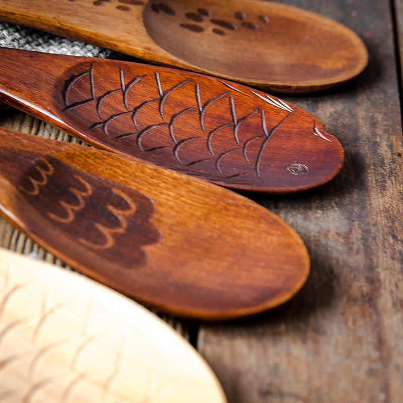 Cartoon small fish Japanese wooden rice spoon wooden rice spoon home meal creative solid wood rice spoon cute wood
