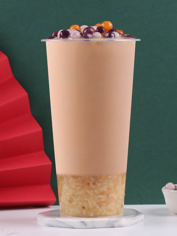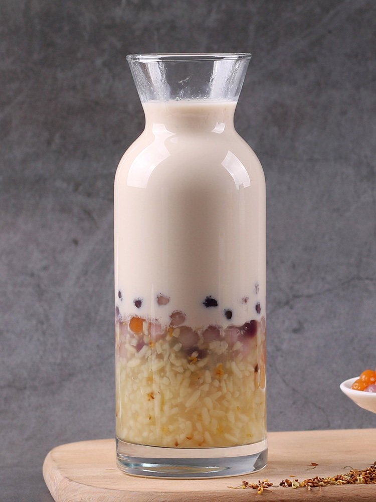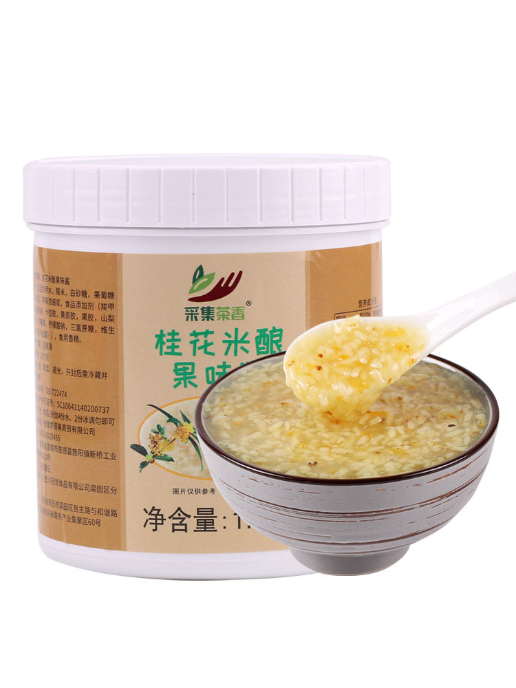 Osmanthus rice stuffed with grape jam, peach jam, kiwi jam, strawberry jam, lychee jam, white peach jam, green plum jam, sweet orange jam, jasmine jam, passion fruit jam, green grape jam, Alphonso mango jam, and small pear soup
