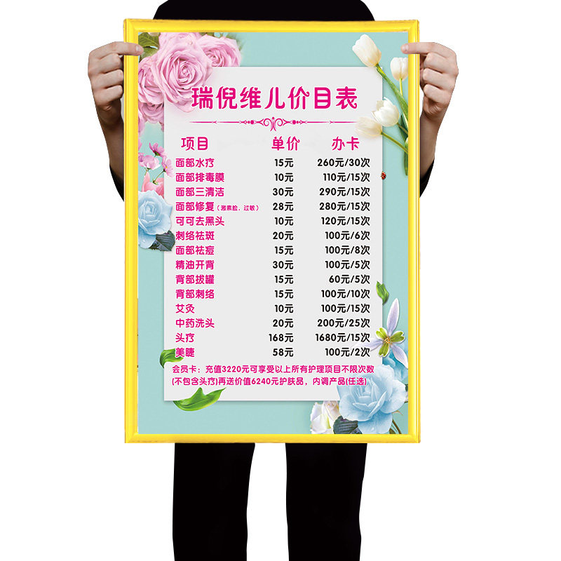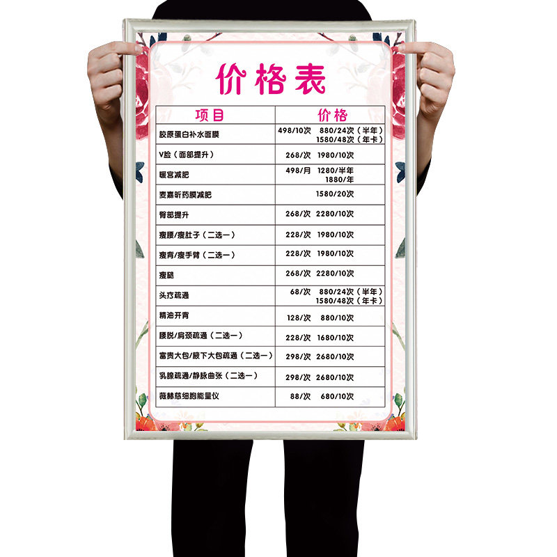 Beauty salon price watch wall sticker list design and wall custom advertising sticker KT board poster