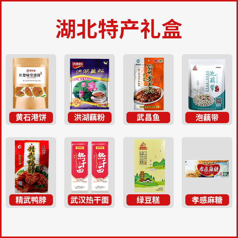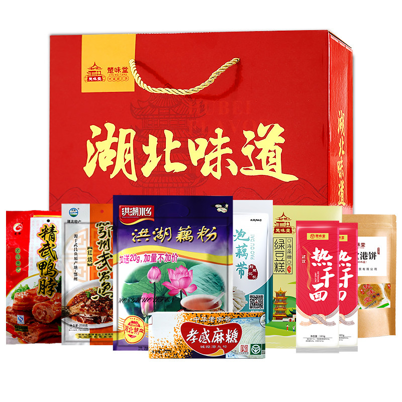 Hubei specialty Wuhan specialty gift box Hot dry noodles Jingwu duck neck Wuchang fish lotus root powder Xiaogan hemp sugar Huangshigang cake