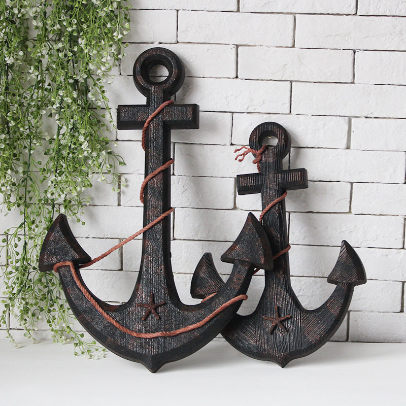 Iron Anchor Mediterranean Style Retro Handmade Wooden Hanging Ornaments Anchor Bar Decorative Anchor Wooden Anchor Backwall