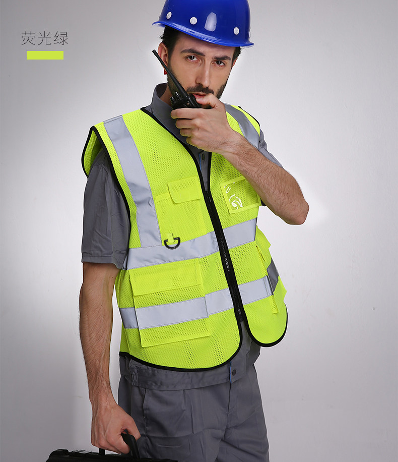 Reflective vest Multi-pocket mesh Mesh Breathable Construction Safety Automotive annual Review Reflective Clothing cleanerwork waistcoat
