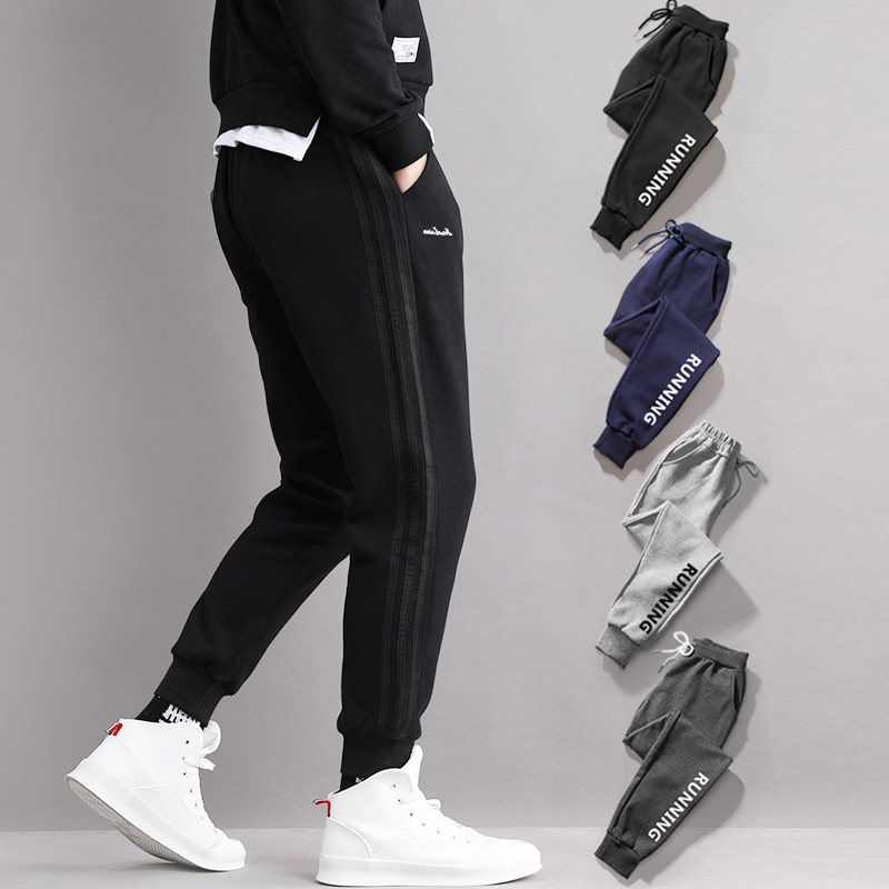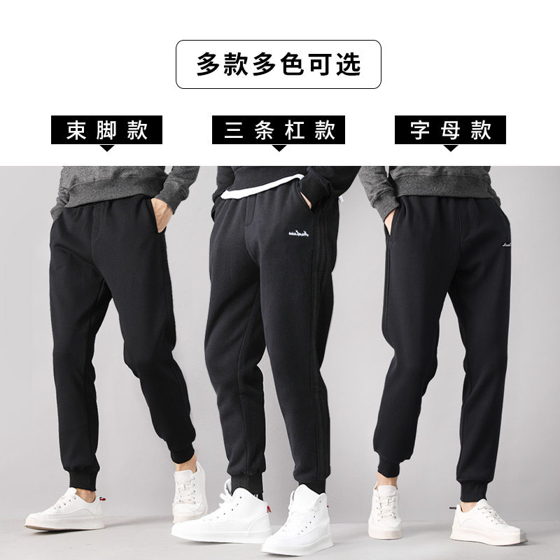 Sweatpants men's loose closed drawstring leg casual pants Large size ins super fire autumn and winter velvet sweater knitted trousers