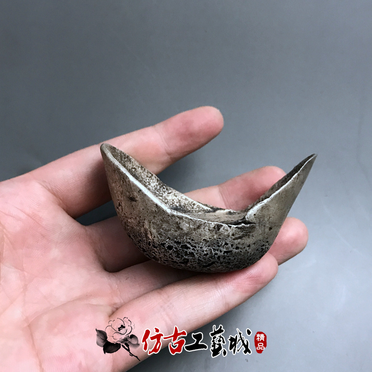 Antique white copper silver-plated ingot Silver ingot Antique Qing Dynasty Guangxu Xianfeng Year ten or two silver ingots Ancient coins Antique silver money