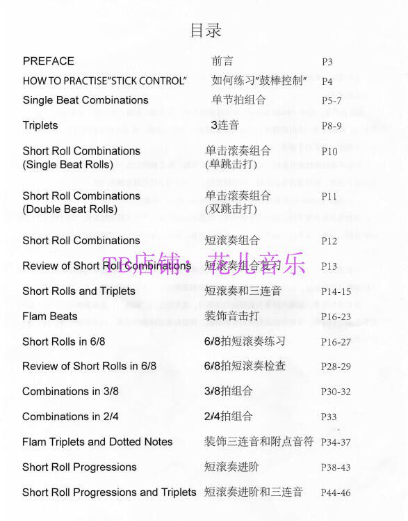 Chinese and English Drum Bible 01 Stick Control For The Snare Drum