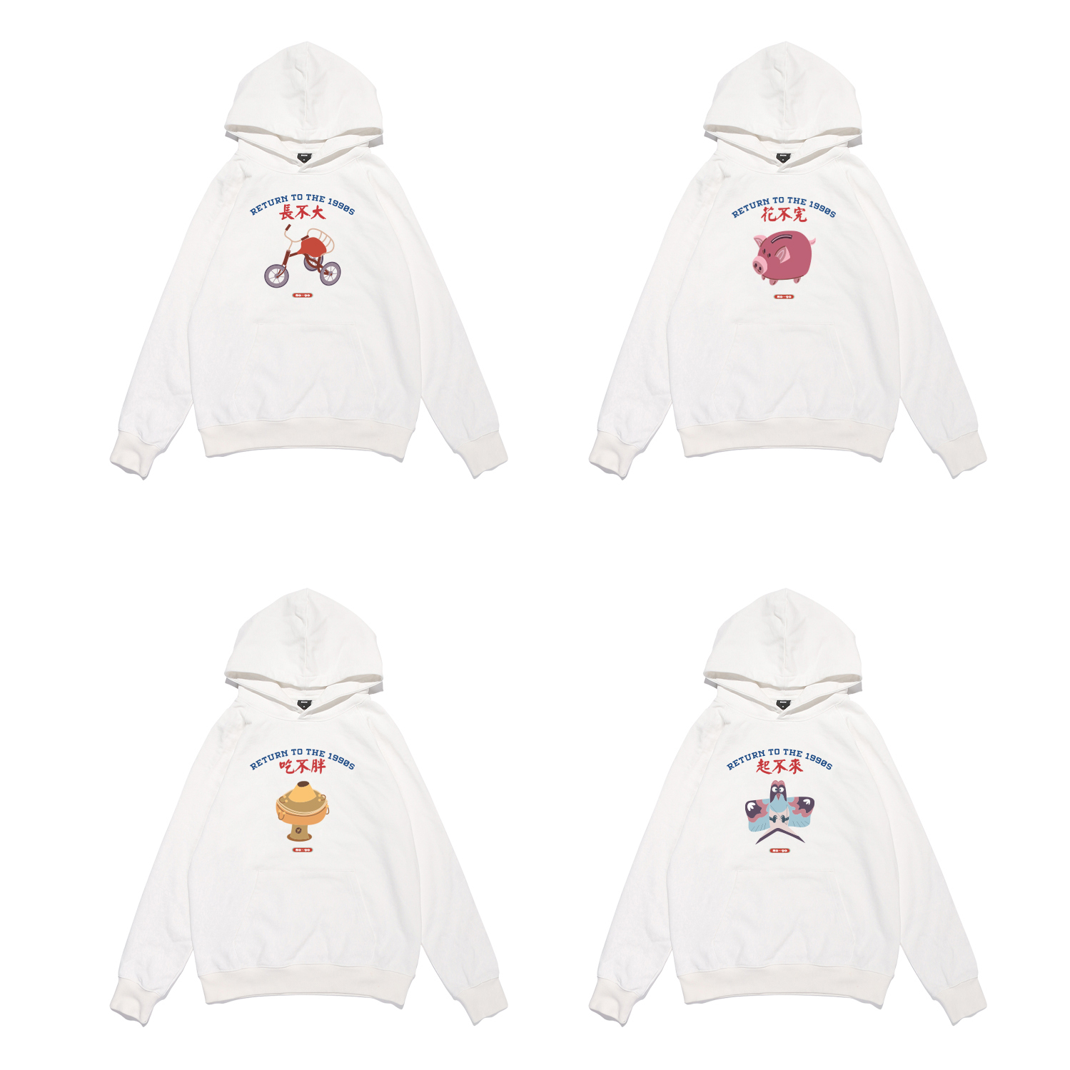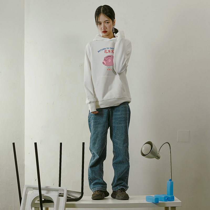 BUGOU original brand Pig year New Year New Year edition flowers do not finish eating not fat Creative couple thick T-shirt hoodie