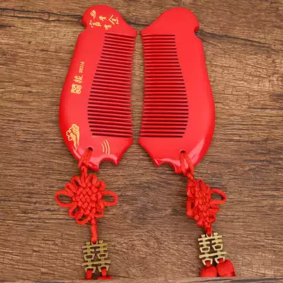 Wedding supplies Encyclopedia New engagement dowry woman bride red pair comb married mahogany box comb