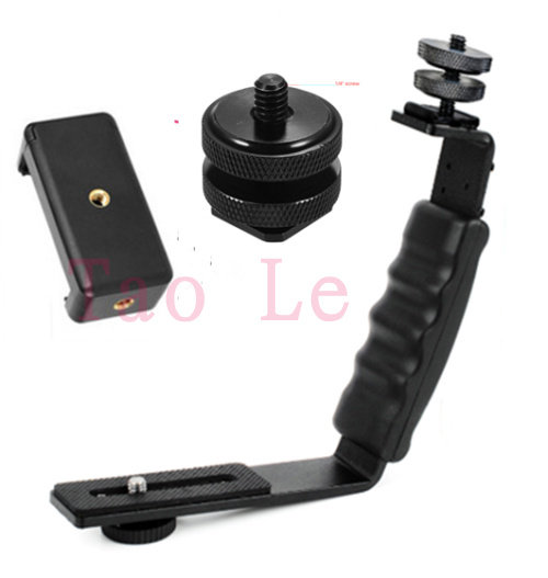 Hot sale flash stabilizer L-type handheld low-beat monocular mobile phone shock absorption stabilization bracket one drag two hot shoe holder