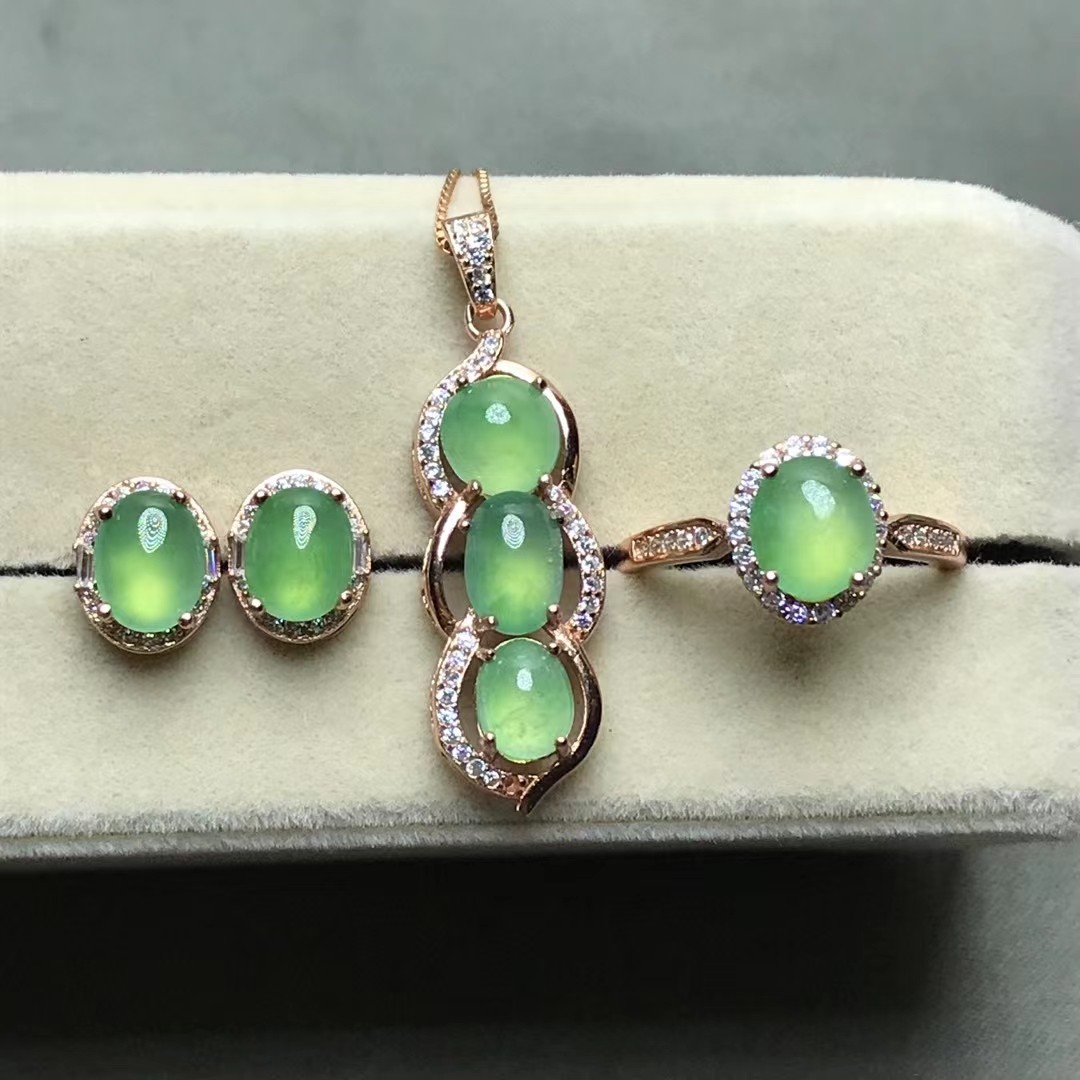 Emerald 925 silver inlaid ring female A cargo Myanmar hand string pendant bracelet gold leaf jade leaf gourd chain Guanyin Buddha