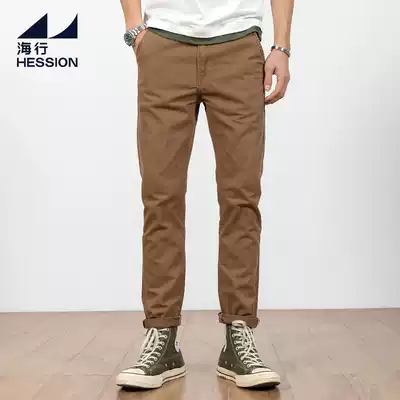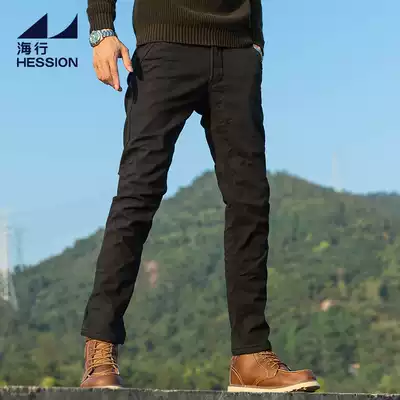Hai Xing gray men's straight casual pants autumn and winter thickened pants Korean trend slim business trousers