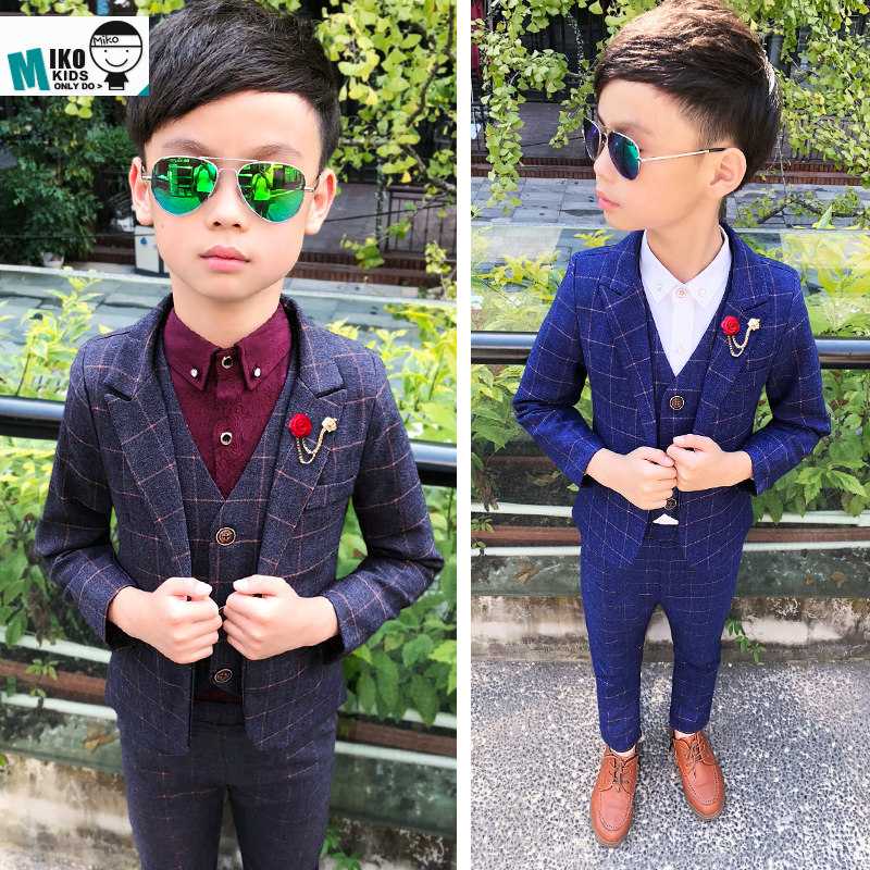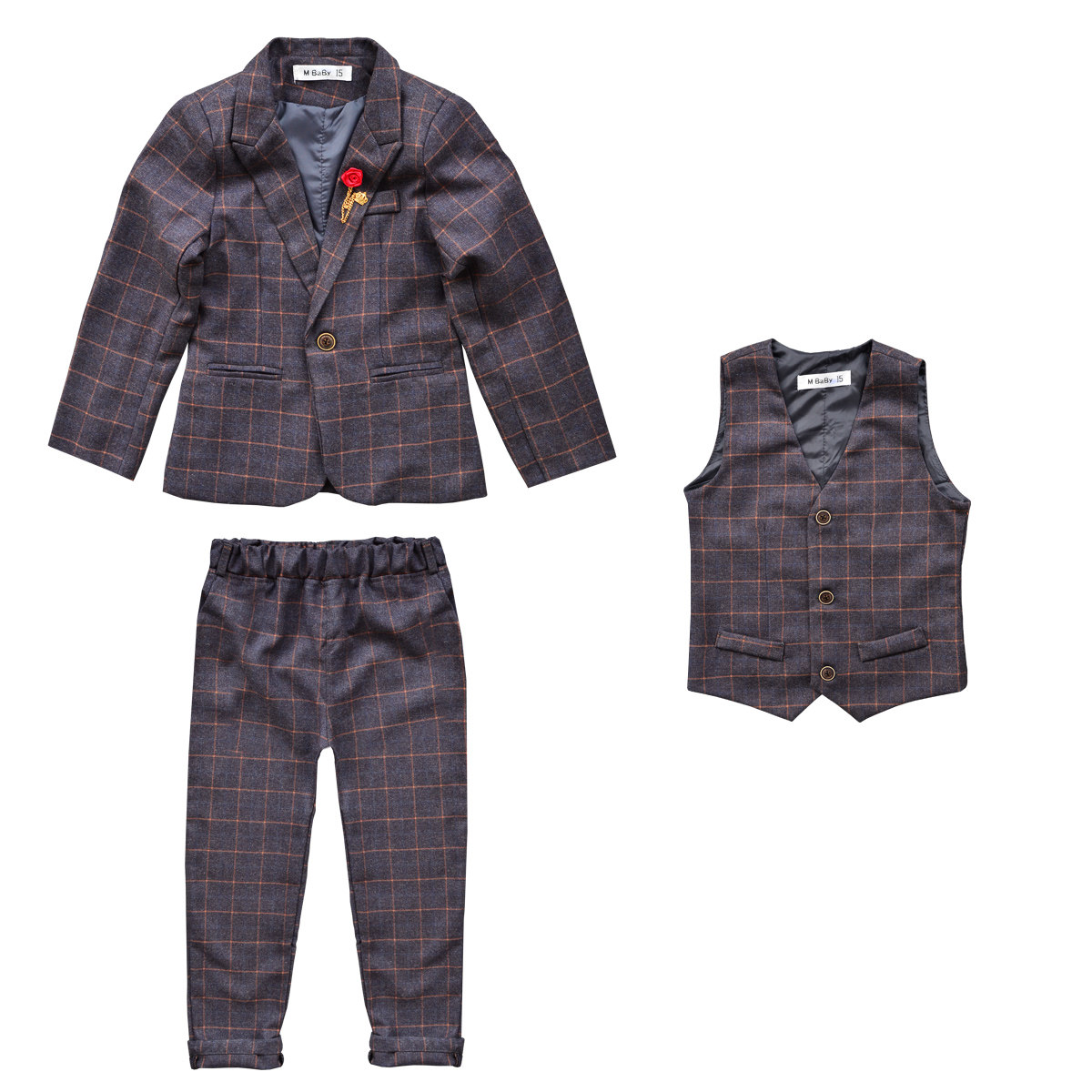 Autumn Winter Thickened Children's Dress Children Plaid Suit Three Sets Boy Small Suit Suit Flower Boy Dress Rehearsal