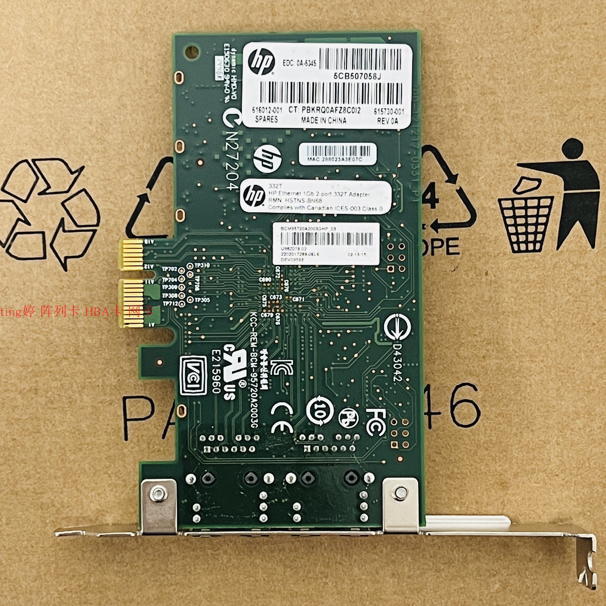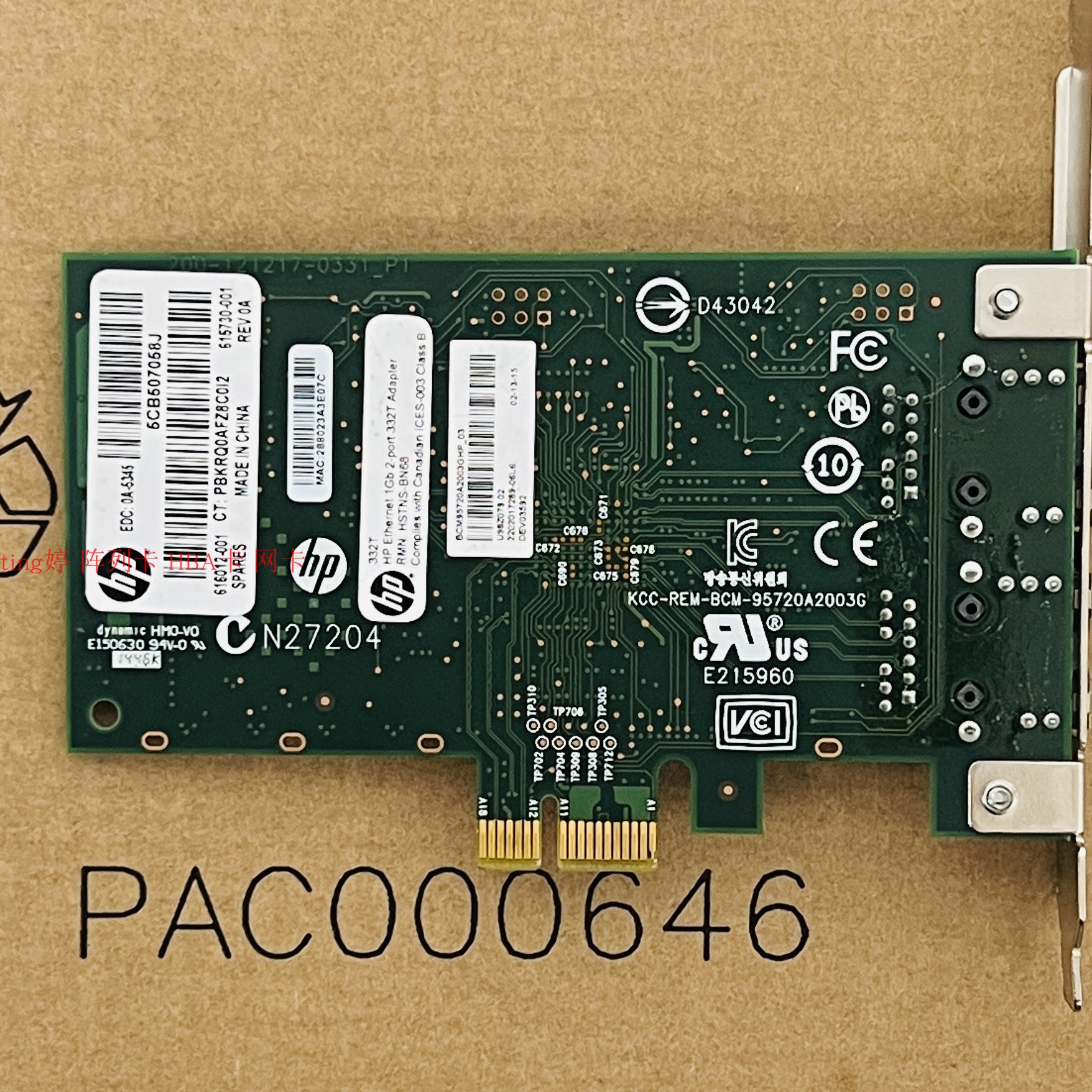 HP 332T dual-port Gigabit network card 616012-001 615730-001 BCM5720 original disassembly machine