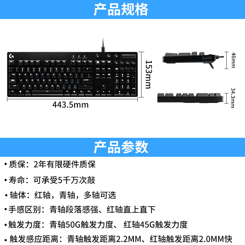 (Official Flagship) Logitech G610 Wired Mechanical Keyboard Backlit Game Macro Design Cherry Green Red Tea Shaft G502hero Mouse Notebook