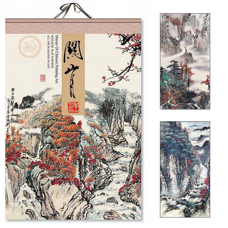 2022 upscale Hanging Calendar Guan Shan Moon Paper Hanging Calendar Tiger Year Old Chinese Lunar Calendar Landscape Painting Hanging Calendar This China Year Hanging Calendar 2022 Double Lunar Calendar Upscale Creative Lan Kiosk Calligraphy Hang Calendar Lunar Calendar
