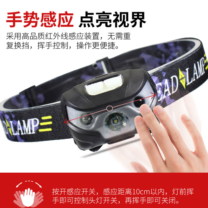 USB Rechargeable Headlights Bright LED Gesture Inductive Switch Mini Fishing Small Miner's Lamp Wearing strong flashlight