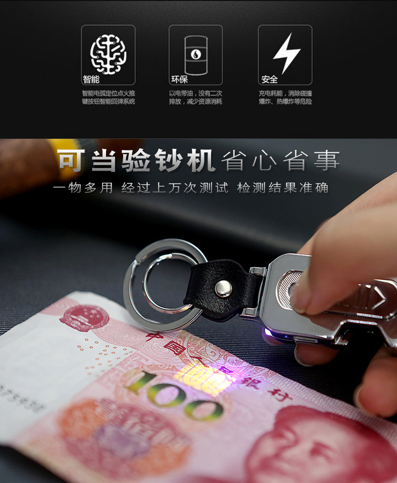Business Metal Aggravating with banknote-checking lamp keyring Charging Fight Fire Creative Multifunction Bottle Opener Pendant