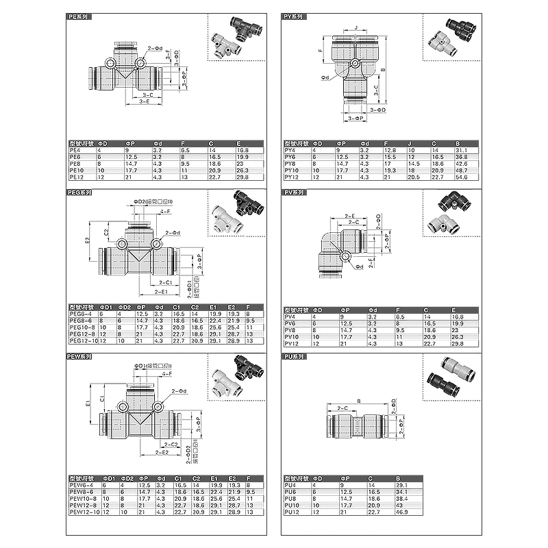 PY4 PY6 PY8 PY10 PY12 PY14 PY16 PWY6-4-4 PWY8-6-6 PWY10-8-8