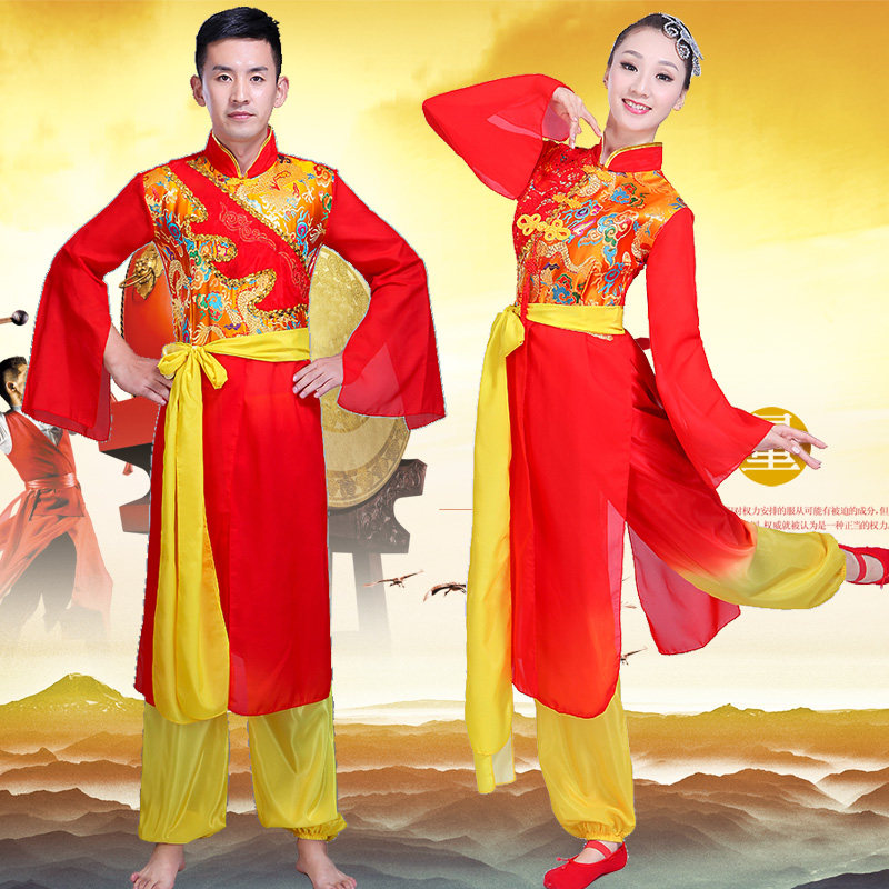 New Year's Day Men's and Women's Chinese Yangko Drum Dress Festive National Style Square Opening Dance Performance Dress Classical Dance Elegant