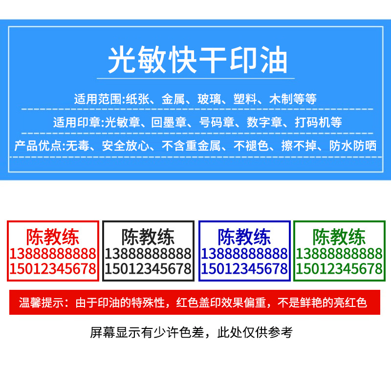 Photosensitive fast-drying printing oil seal engraving ink stamping wall glass metal plastic special printing oil 10ML