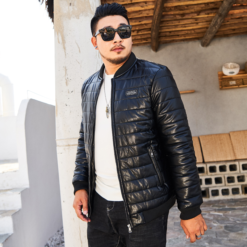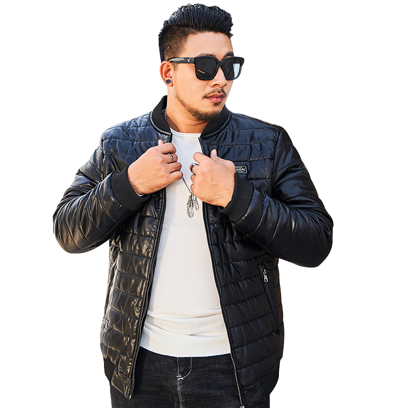 300 catty plus size Gats plus size leather clothes men chubby jacket cotton jacket fattening loose cotton suit leather outer cover winter-Taobao