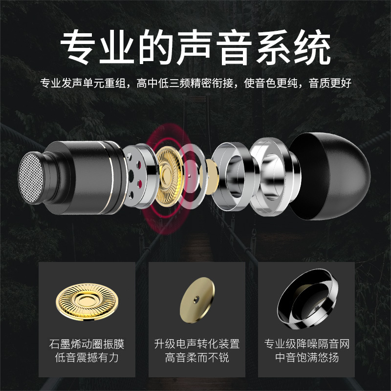 Lanston M406 headphones In-ear Heavy Bass for Girls and Girls General Computer Phone K Song Music Tone Low Sound Cannon Eat Chicken Noise Reduction Notebook Cable Singing Earplug Apple Millet