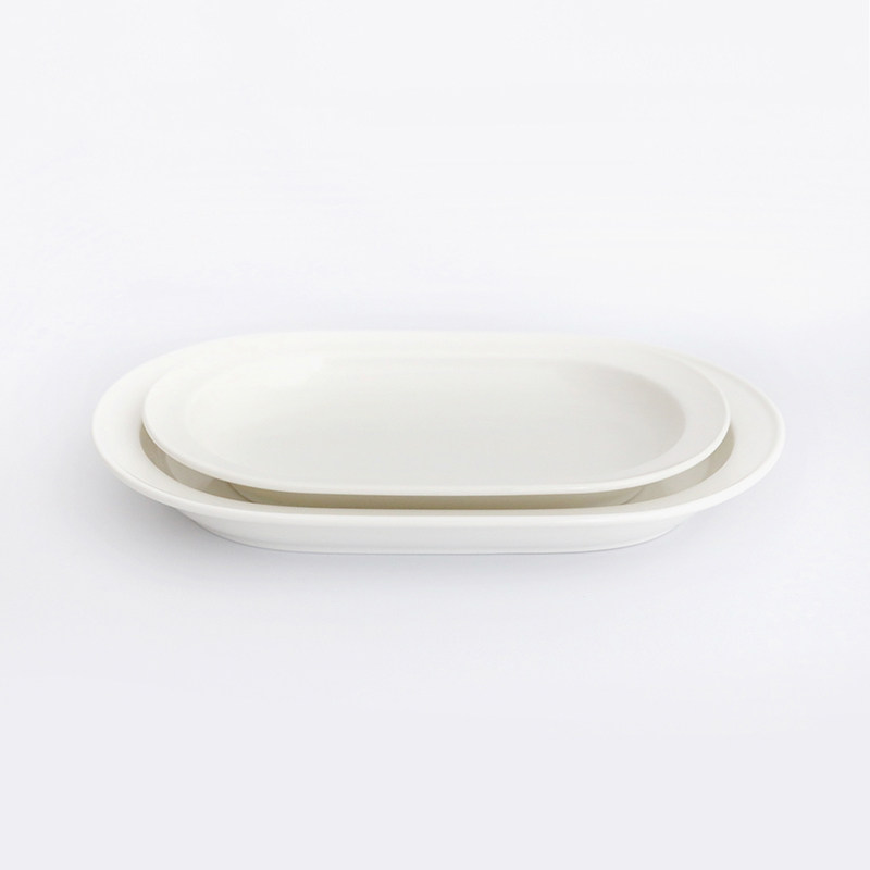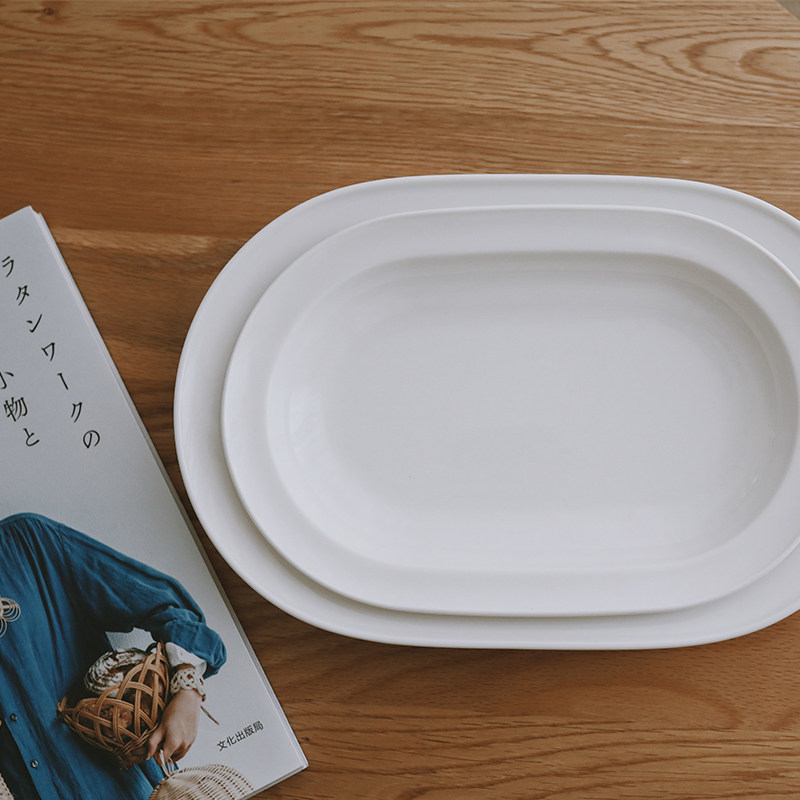 Sticky Rice China Porcelain Ware Classic Oval White Porcelain Tray Wide Side Elliptical Fish Dish Dinner Plate White Porcelain Oval disk