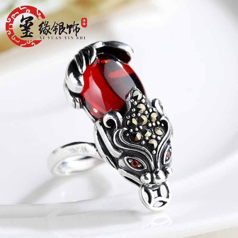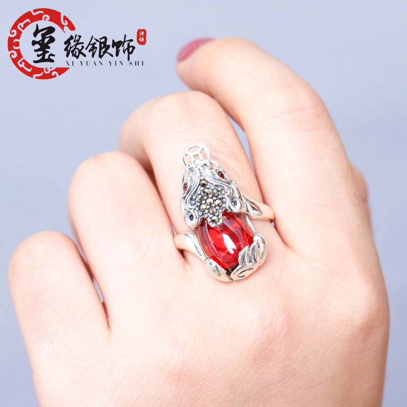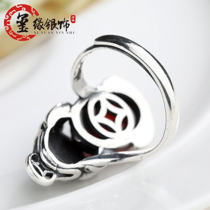 Zhaocai Pixie silver ring mouth copper coin silver ring female original retro ring S925 foot silver opening ring