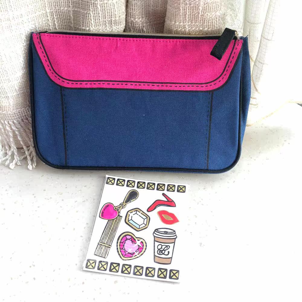 EL Estee Lauder Canvas Denim Bag Pattern Makeup Storage Bag February 2020 Gift Pack Unpacking With Stickers