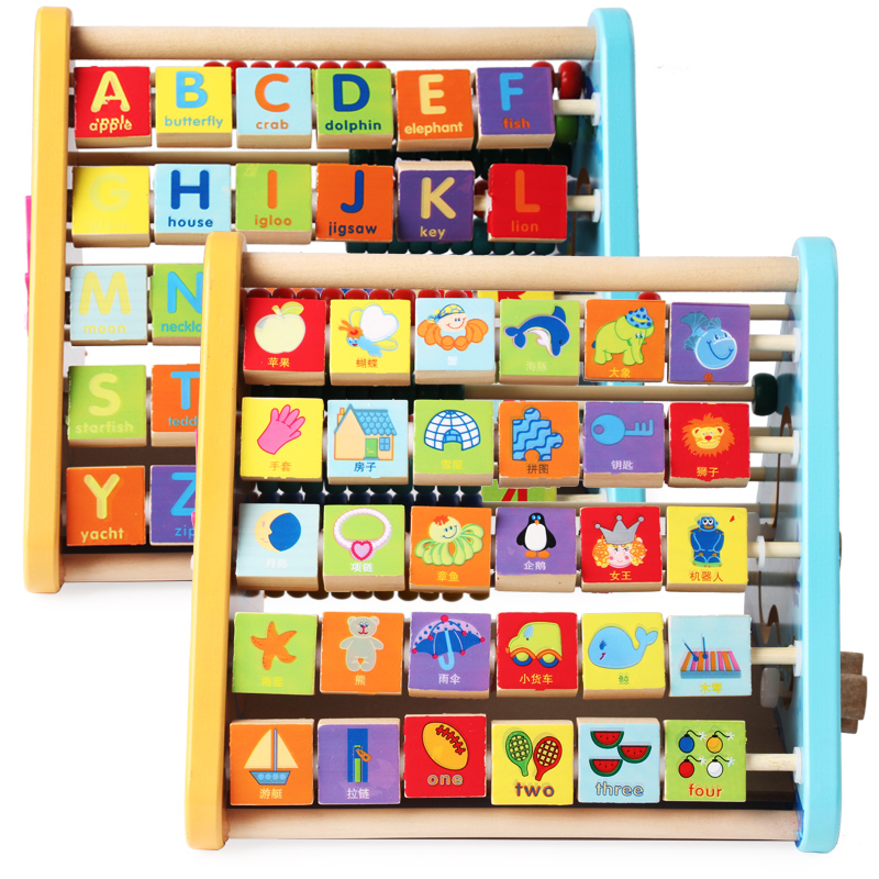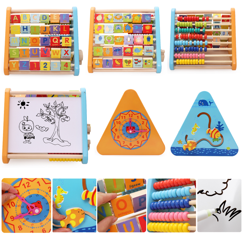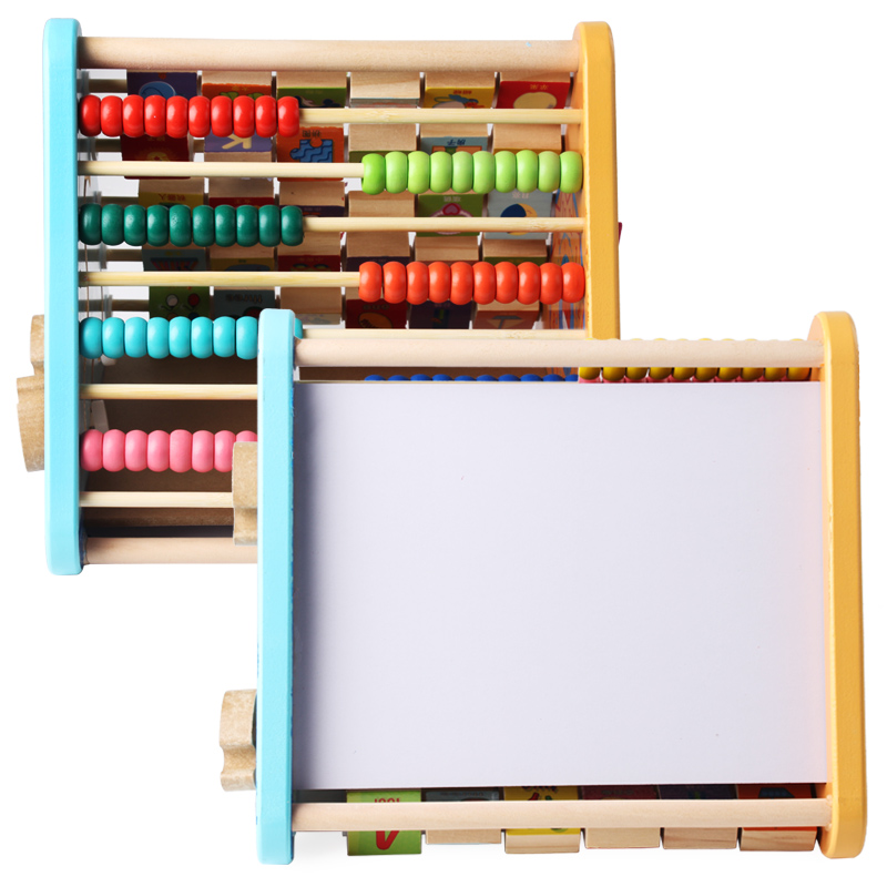 Five-face learning rack counting frame wooden early teaching multifunction pinyin digital letter clock counting bead flip-board toy