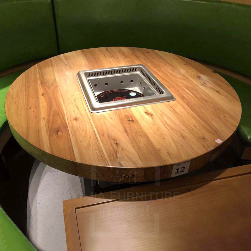 New Chinese old elm wood solid wood hot pot table induction stove integrated intelligent smoke-free purifying equipment Hotpot table and chairs group